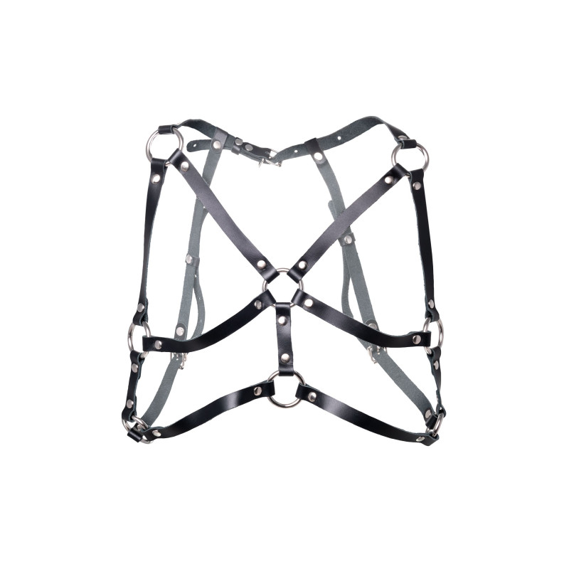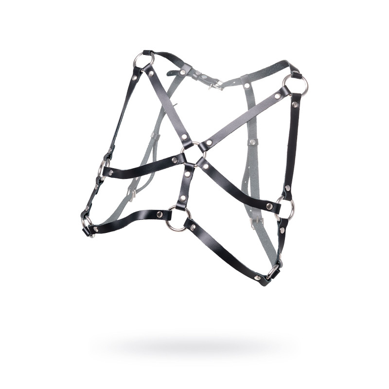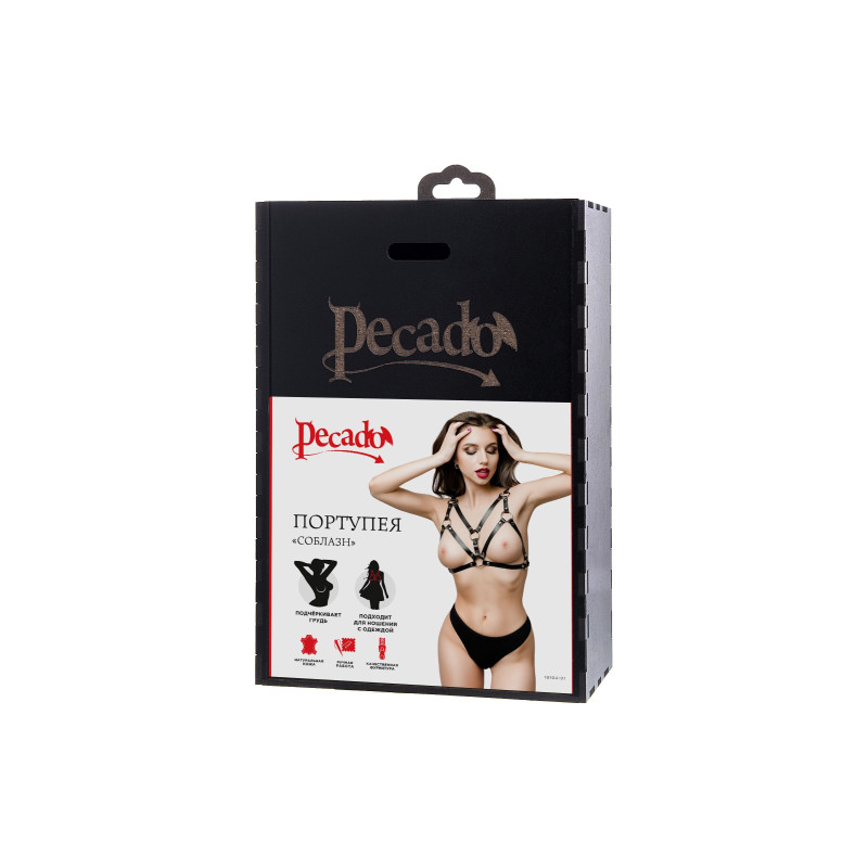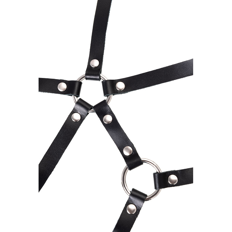 Создайте дерзкий образ для горячих игр вместе с черной портупеей от Pecado.Стильный аксессуар на зону лифа подчеркивает природную красоту женской груди. Модель отличается сдержанным, минималистическим дизайном. Тонкие кожаные ремешки соединены между собой большими стальными кольцами и декорированы заклепками. Вся металлическая фурнитура выполнена из материалов высокого качества. Портупея фиксируется сзади, в области бюста. Хорошая посадка по фигуре обеспечивается благодаря регулируемым ремешкам. Они выполнены из экологичной натуральной кожи. Сексуальный атрибут мягкий, тактильно комфортный и износостойкий. Подходит для ношения как на голое тело, так и поверх нижнего белья.